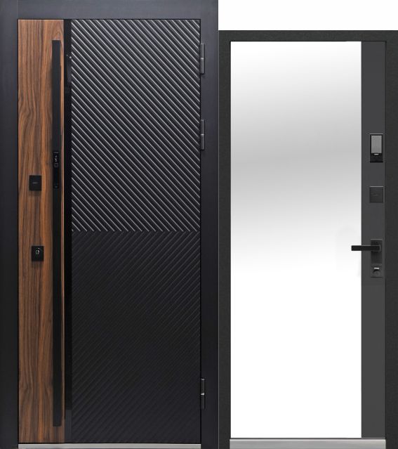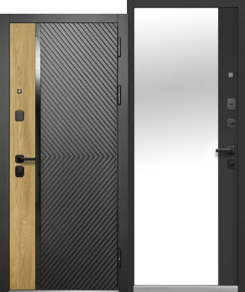 Luxor 2МДФ Диагональ Зеркало — входная дверь серии LUXOR для квартиры с зеркалом в пол, двухсторонней МДФ-отделкой и толстым полотном 115 мм для более комфортной тишины в доме.