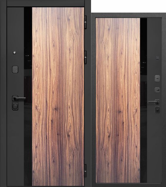 Luxor 2МДФ Орех Каньон Коньяк — входная дверь серии LUXOR от Феррони. Снаружи: фрезерованные МДФ-панели 12 мм, «Орех каньон коньяк», «Сатин черный». Вставка - черный лакобель. Внутри: фрезерованная МДФ-панель 16 мм, «Орех каньон коньяк», «Сатин черный». Вставка - черный лакобель.