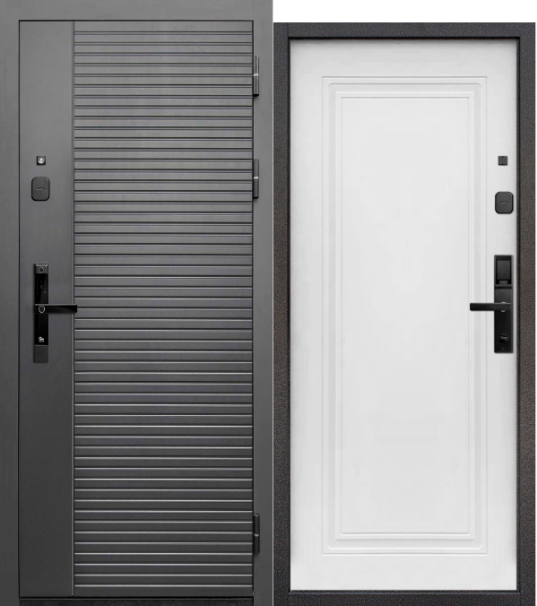 Полотно толщиной 100 мм доступно в размерах 860x2050 и 960x2050 мм, с левым и правым открыванием. На замере важно заранее обсудить сторону открывания, питание/эксплуатацию умного замка и условия установки, чтобы электронная часть работала удобно и без сюрпризов.