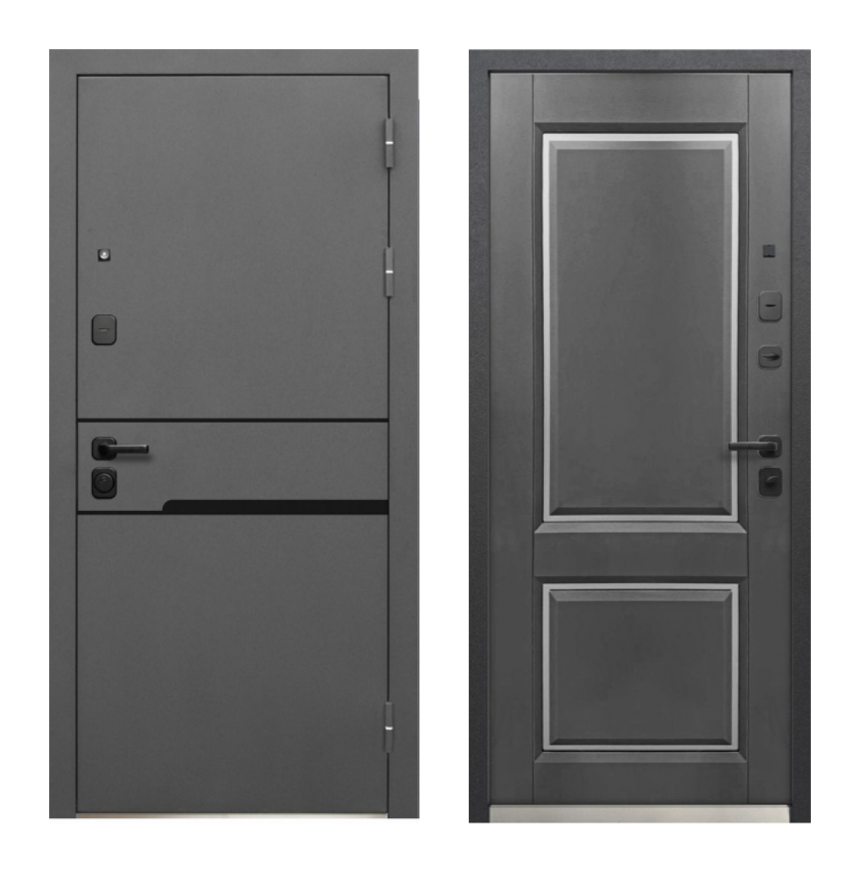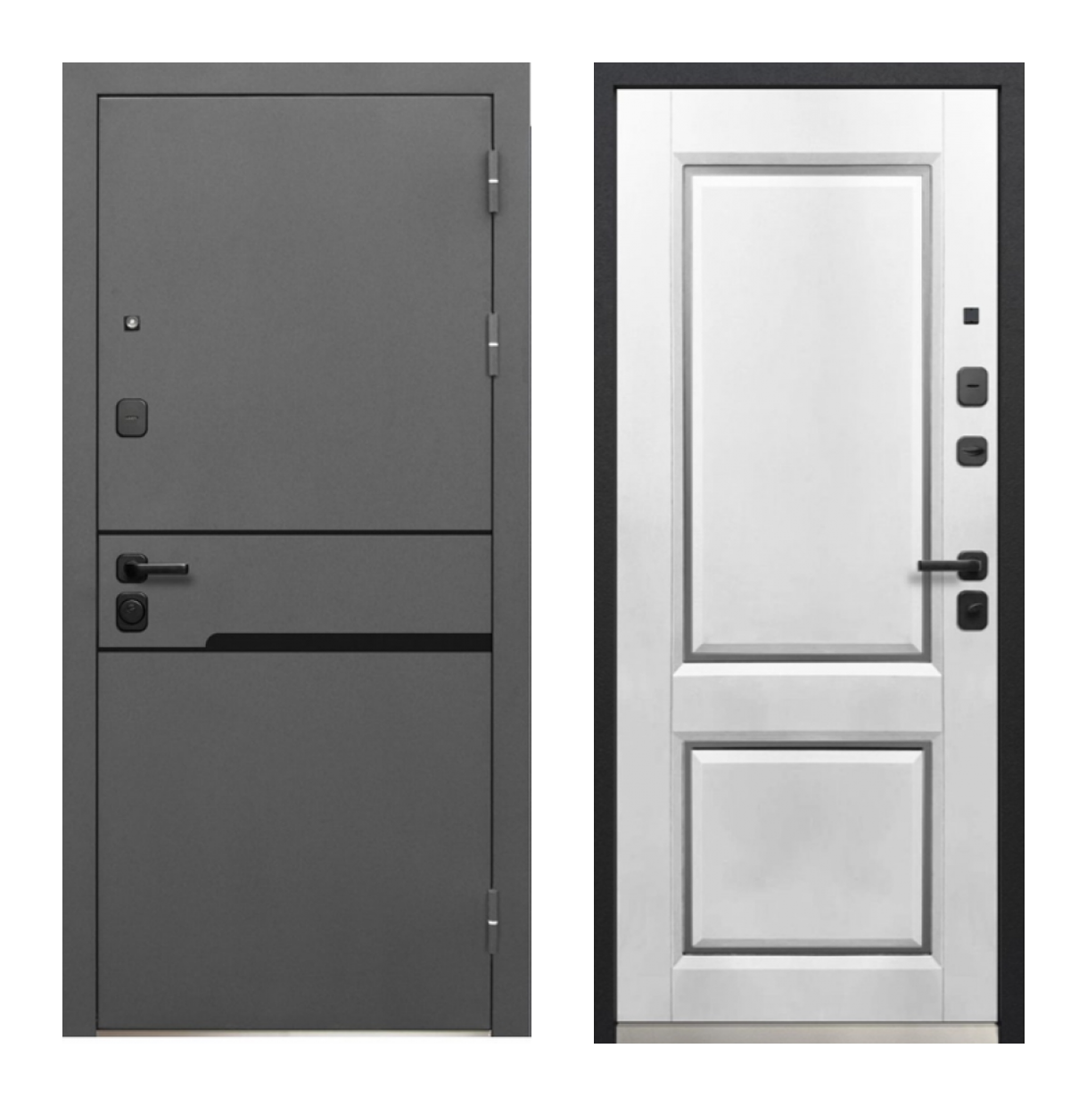 Luxor Классика подходит для квартиры и аккуратных входных групп, где важны спокойный внешний вид, плотное полотно и надежная базовая комплектация. Снаружи дверь выполнена в покрытии Муар 7024 с накладными элементами, внутри используется МДФ-панель 16 мм в двух вариантах: Эмалит белый и Сатин графит. Полотно 100 мм, короб 128 мм, три контура уплотнения и замки KALE IV класса помогают держать тепло, тишину и ежедневную нагрузку.