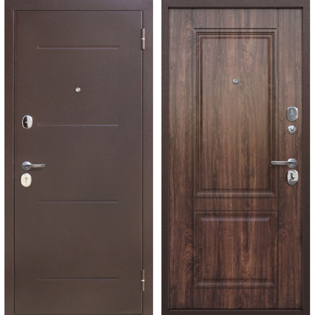 7,5 см Гарда Медный антик Грецкий орех — входная дверь Ferroni с полотном 75 мм, коробом 105 мм и внутренней МДФ-панелью в цвете «Грецкий орех».