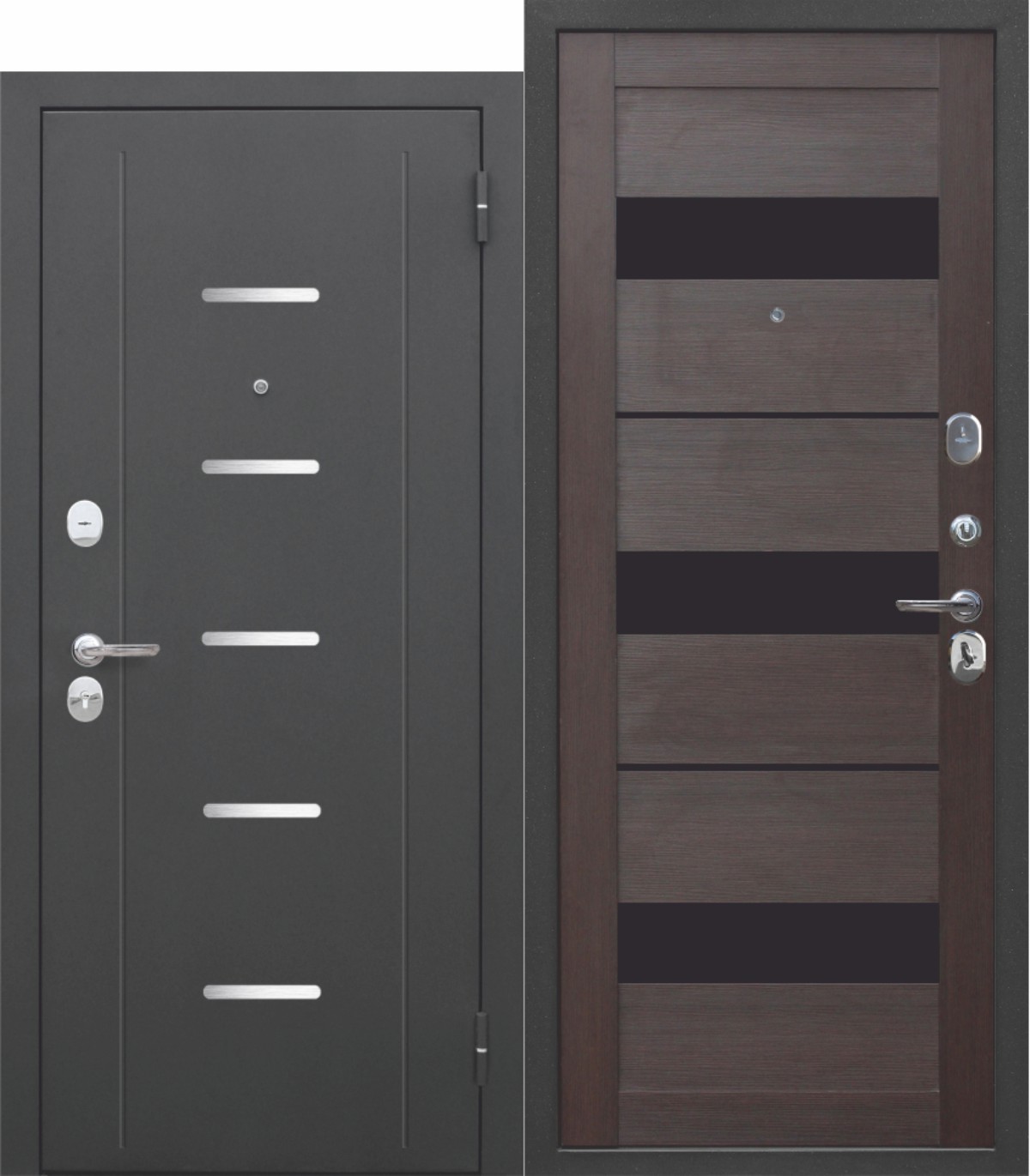 7,5 см Гарда Муар Царга — дверь Ferroni с внешним покрытием Чёрный муар и царговой МДФ-панелью внутри: Лиственница беж или Темный кипарис.