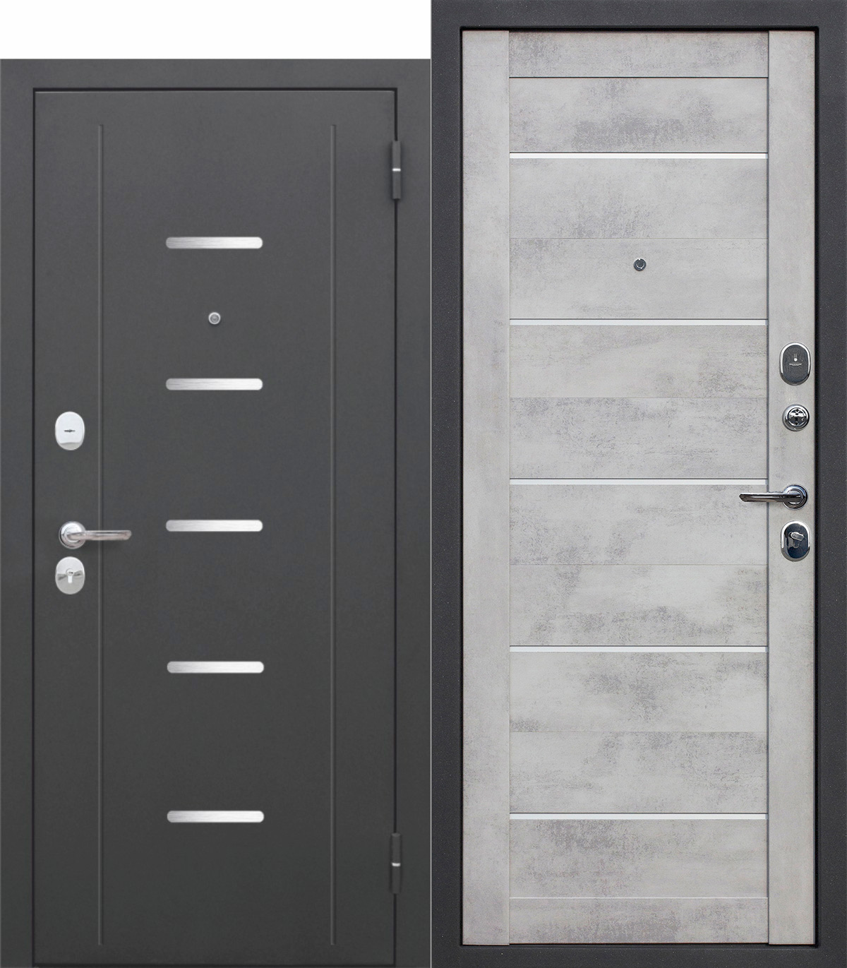 7,5 см Гарда Серебро Царга — входная дверь Феррони с царговой внутренней панелью: «Астана милки», «Бетон снежный» или «Дуб Неаполь грей».