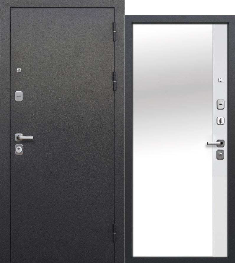 9 см Серебро Эмалит белый Зеркало — входная дверь с внешним покрытием «Антик серебро» и внутренней МДФ-панелью со встроенным зеркалом от Феррони. Доступные размеры: 860x2050, 960x2050 мм. Открывание: левая, правая.