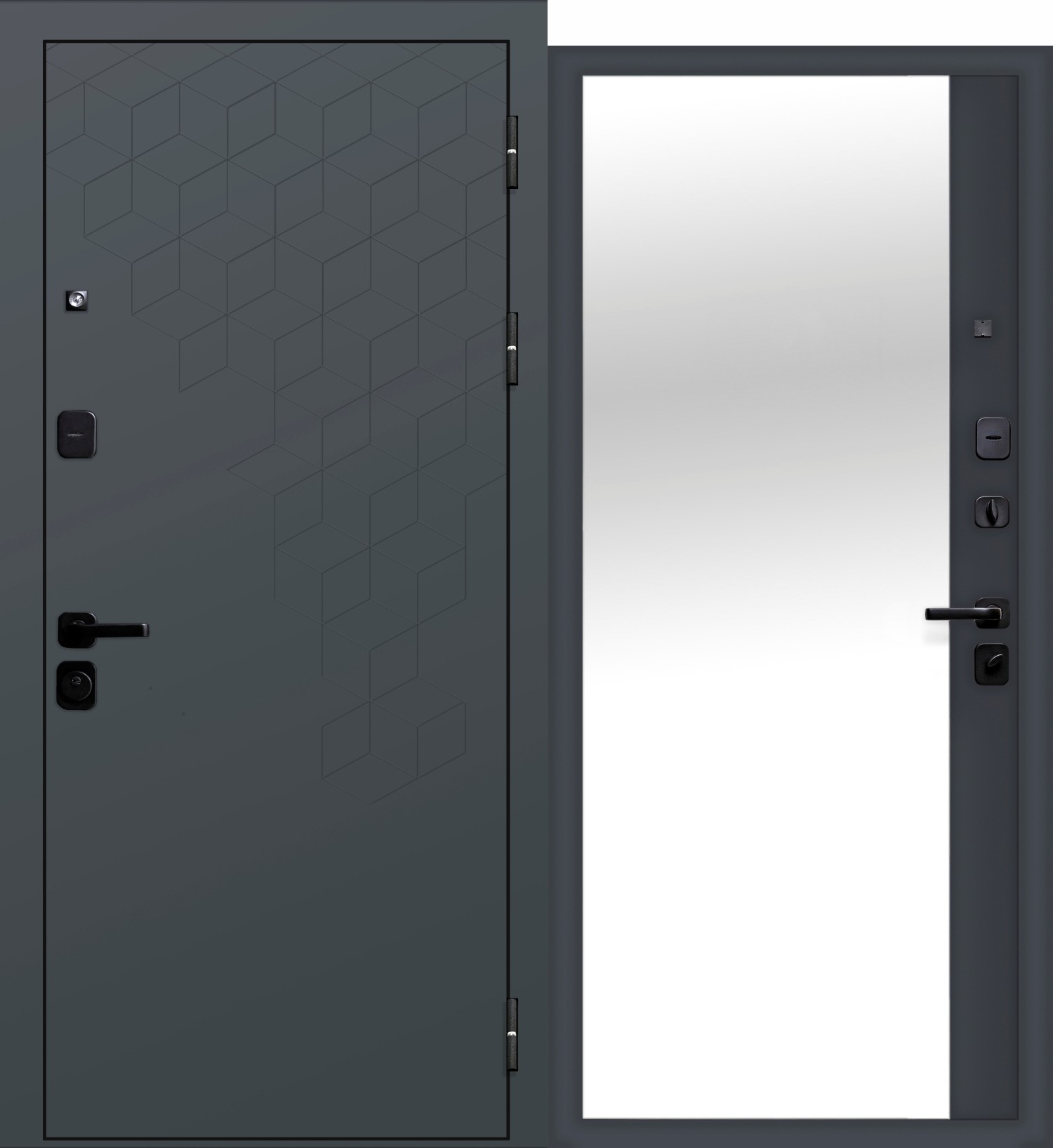 Покрытие: снаружи атмосферостойкое порошково-полимерное муар RAL 7024, с фрезеровкой по металлу; внутри МДФ-панель, цвет - сатин графит, накладное зеркало.