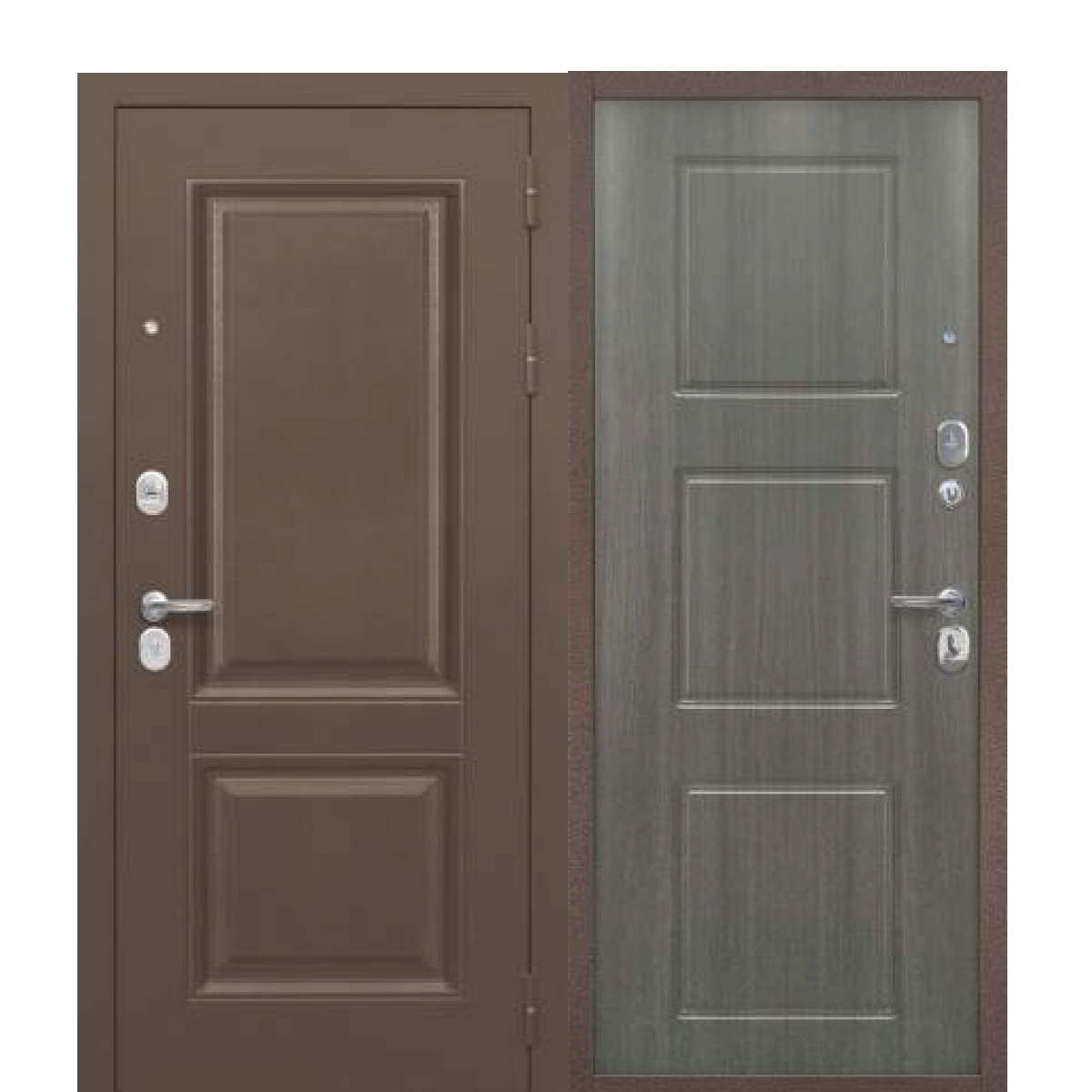 Покрытие: снаружи атмосферостойкое порошково-полимерное «Букле шоколад»; внутри МДФ-панель, цвет – лиственница Грей темная.