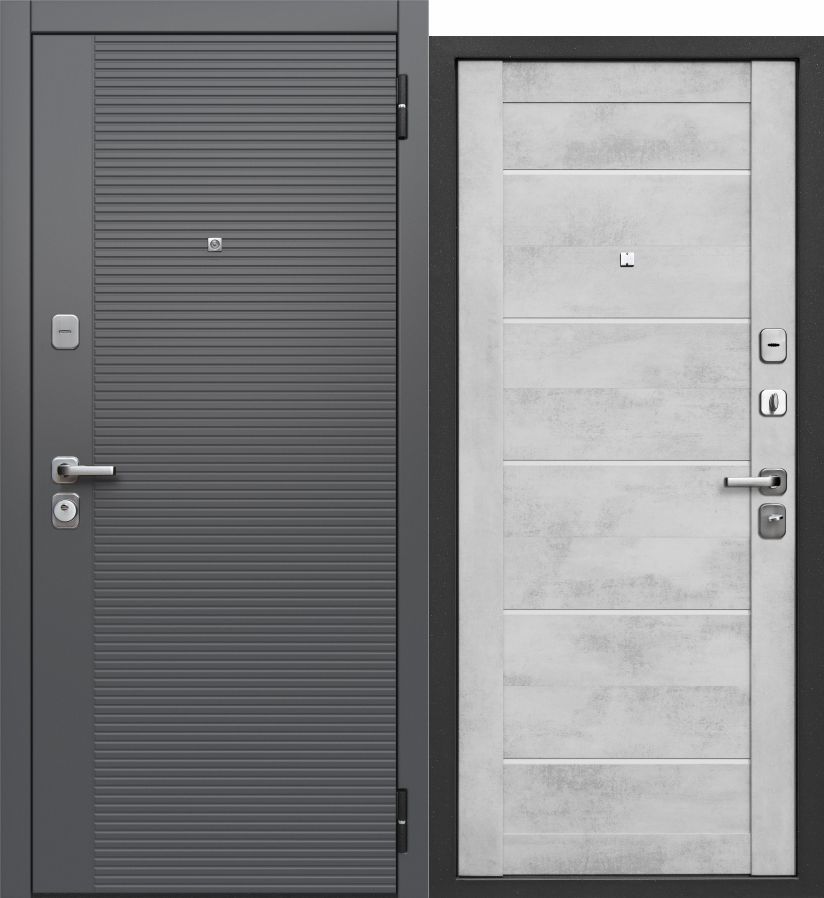 7,5 см Бостон Бетон снежный Царга — входная дверь Феррони серии Бостон с внешним покрытием фрезерованная МДФ-панель 8 мм, цвет – сатин графит. Доступные размеры: 860x2050, 960x2050 мм.