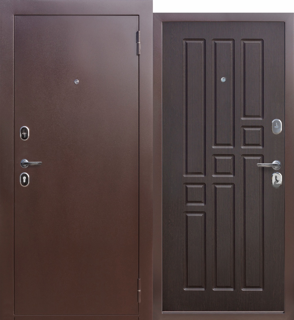 Гарда мини Венге — входная дверь Феррони уменьшенной высоты с внешним покрытием «Медный антик» и внутренней МДФ-панелью 6 мм.
