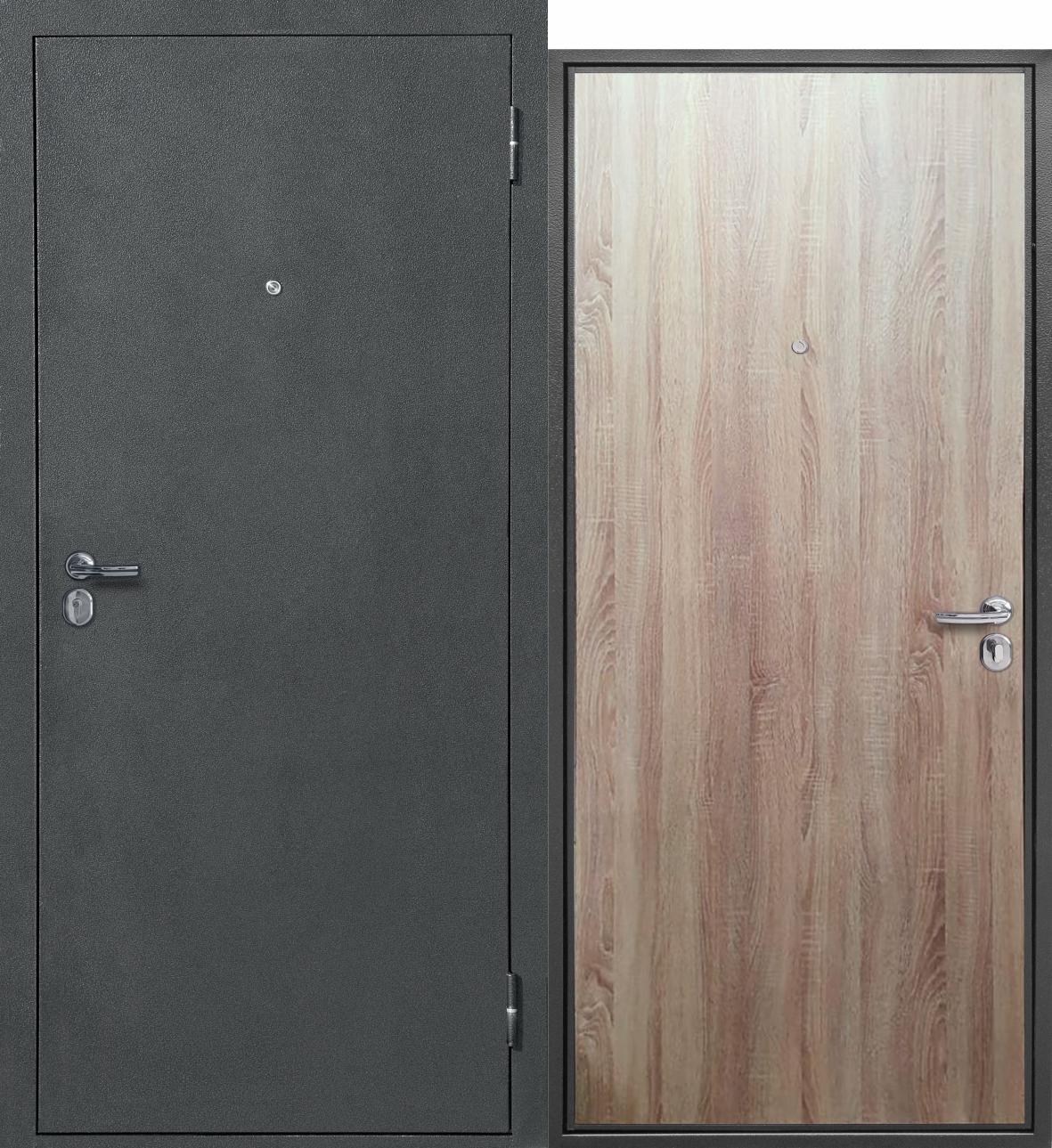 Стройгост 5 РФ серебро Дуб сонома — входная дверь Феррони серии Стройгост 5 РФ с внешним покрытием атмосферостойкое порошково-полимерное «Антик серебро». Доступные размеры: 860x2050, 960x2050 мм.